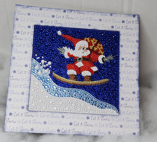 Add a playful twist to your holiday décor with this Diamond Art Santa Snowboarding Plaque! Featuring Santa Claus riding a snowboard down a sparkling snowy slope, this piece is full of festive fun and shimmer.