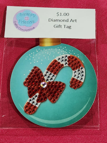 • At the center is a candy cane made of red and white rhinestones, arranged in a sparkling diamond art style.