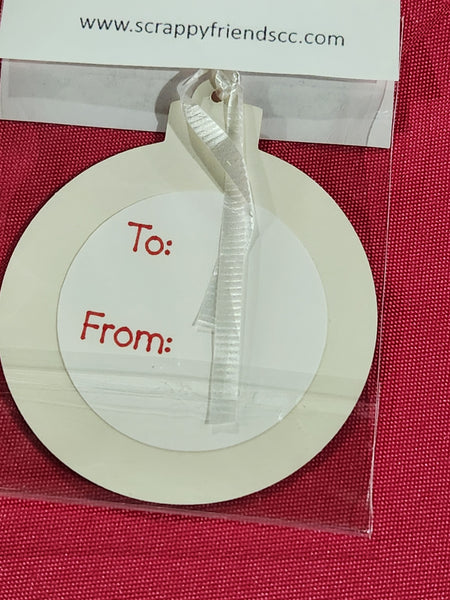 • A white ribbon is attached to the tag, making it easy to tie onto gifts.