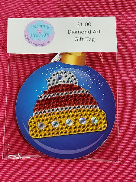 • At the center is a winter hat embellished with silver, red, and yellow rhinestones, arranged in a sparkling, eye-catching pattern.