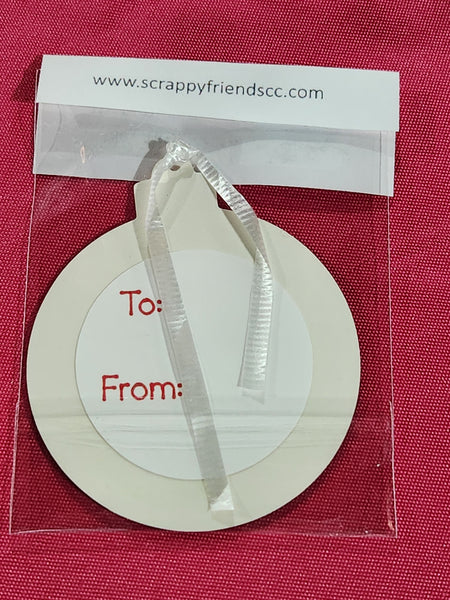 • A white ribbon is attached to the tag, making it easy to tie onto gifts.
